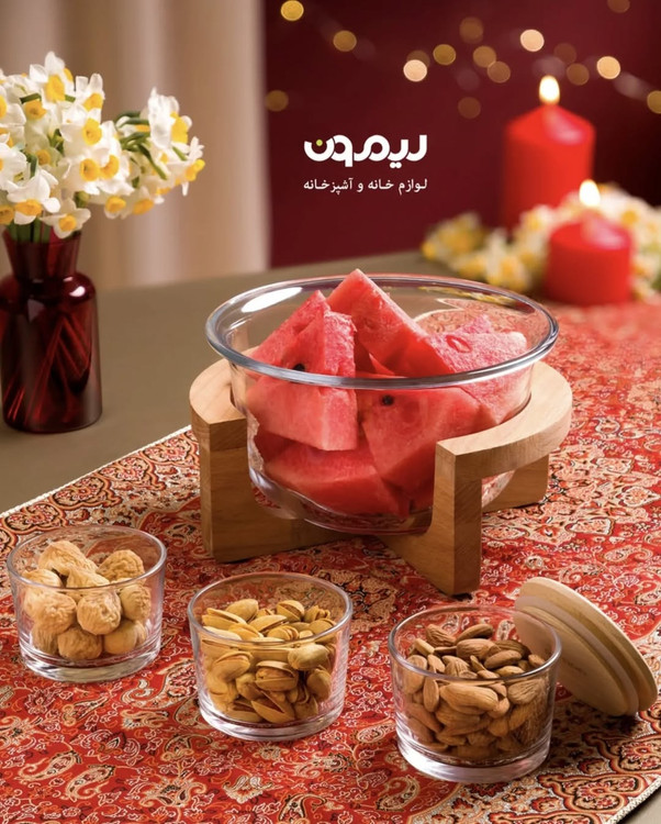 کاسه سرو پایه چوبی لیمون جنس کاسه: شیشه ای جنس پایه: چوب رابروود .
