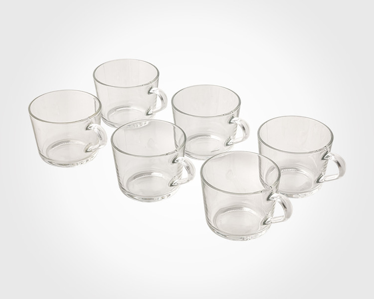 فنجان شیشه ای دسته دار شش عددی ابعاد: طول با دسته 11.7 قطر 9 ارتفاع 7.3 سانتیمتر حجم: 285 سی سی مجموعه ۶ عددی . جنس بدنه شیشه . دارای جعبه شیک و کادویی لیمون .