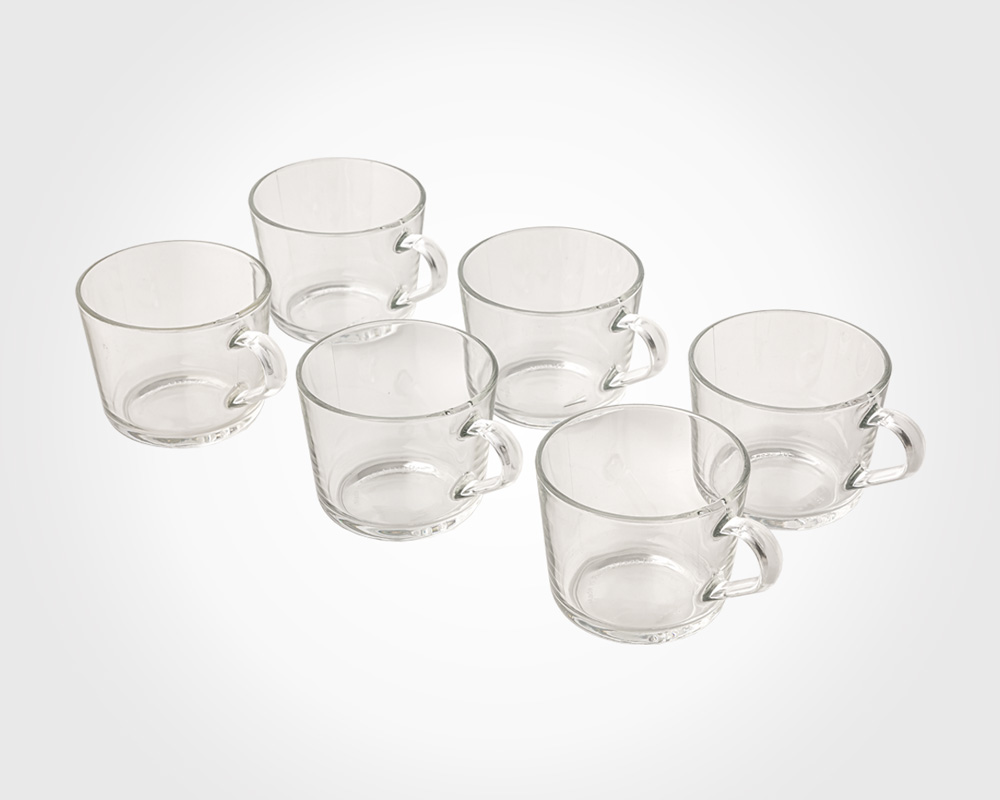 فنجان شیشه ای دسته دار شش عددی ابعاد: طول با دسته 11.7 قطر 9 ارتفاع 7.3 سانتیمتر حجم: 285 سی سی مجموعه ۶ عددی . جنس بدنه شیشه . دارای جعبه شیک و کادویی لیمون .