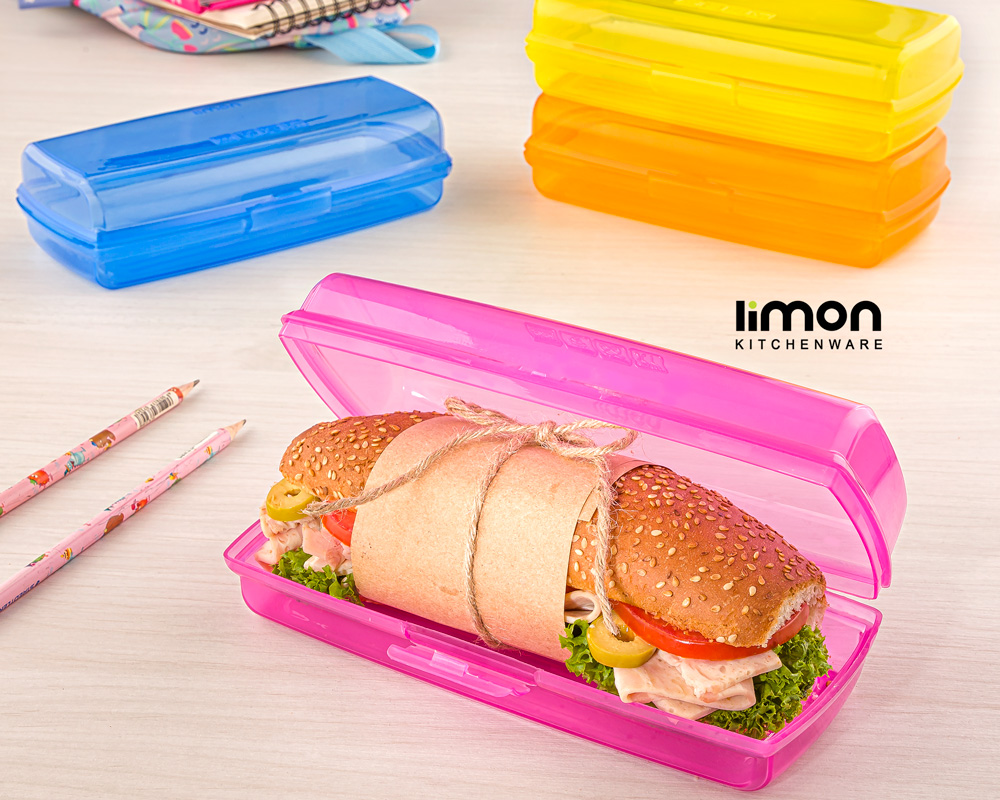 ظرف ساندویچ و جعبه همراه لیمون . مناسب محل کار ، دانشگاه و مدرسه .