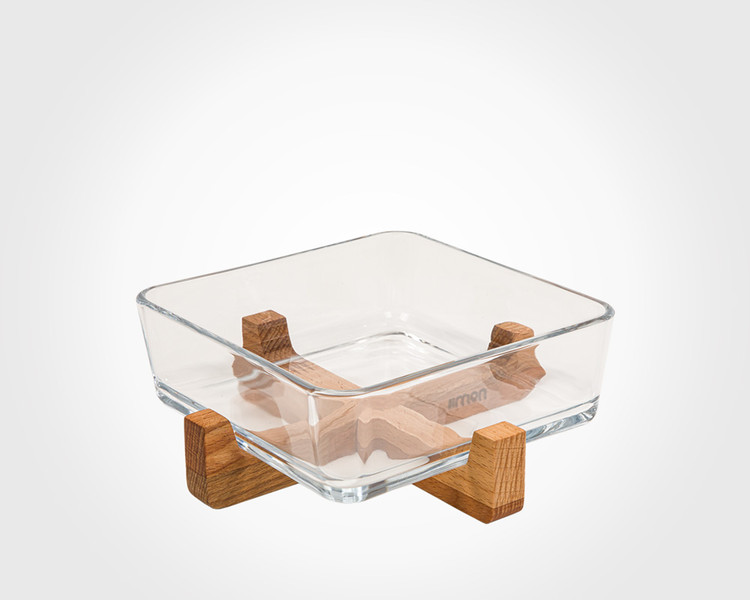 ظرف سرو شیشه ای پایه چوبی جنس ظرف: شیشه ای جنس پایه: چوبی