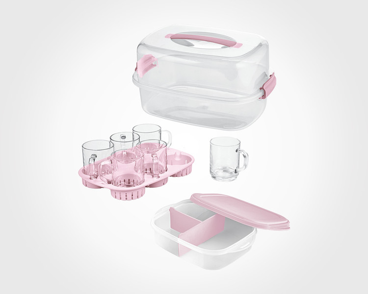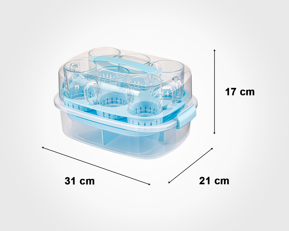 ست چایخوری محصول جدید شامل : ۶ عدد لیوان شیشهای دستهدار یک عدد ظرف دربدار سه خانه (اردور خوری) ۱عدد سینی به همراه باکس محصول