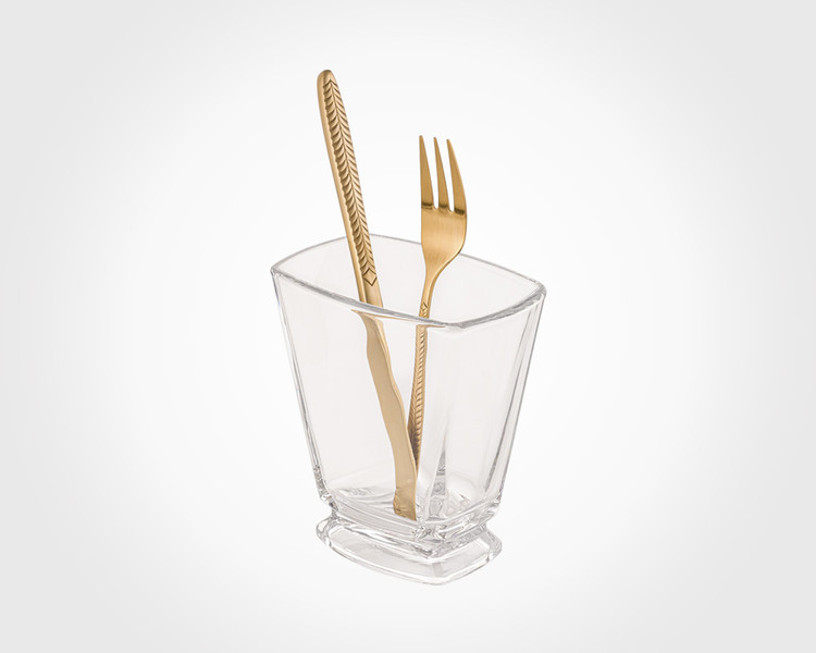 . محصول جدید جا کاردی ایستاده شیشهای ابعاد محصول: طول: 10.5 سانتیمتر عرض: 7 سانتیمتر ارتفاع: 12 سانتیمتر