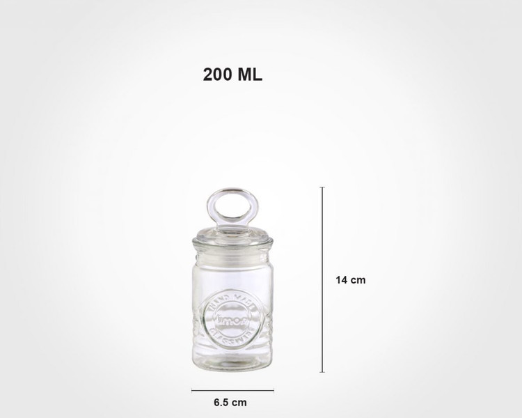 قطر ۶/۵ cm , ارتفاع ۱۴ cm , حجم ۲۰۰ میلی لیتر